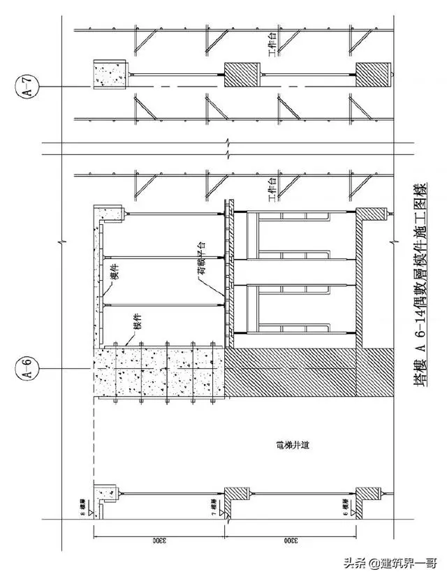 7.3 避难层顶楼面板,而于预先搭建通架平台上进行模板施工