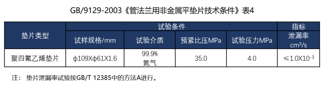 根据现行的《TSG D7002-2006 特种设备安全技术规范 压力管道元件型式试验规则》中附件F《压力管道用密封元件典型产品型式试验项目及其内容、方法和要求》F4提到的试验方法,密封泄漏率条件按照GB/T 12385《管法兰用垫片密封性能试验方法》规定。