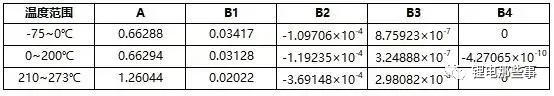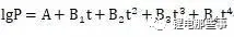 式中P单位mmHg(1Kpa=7.5mmHg),t单位℃,B1、B2、B3、B4为拟合常数;不同温度下的拟合常数: