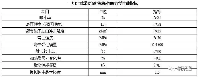 组合式带肋塑料模板物理力学性能指标↓↓↓