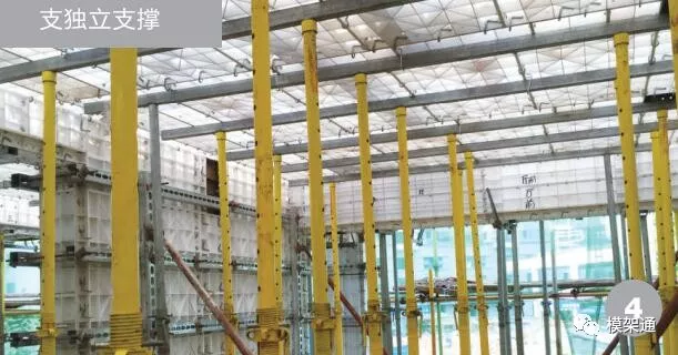 由内插管、外套管、调节螺母、插销、支撑头等组成的可伸缩调节的单根垂直支撑,用于承受建筑物水平结构自重、模板系统自重和施工荷载。