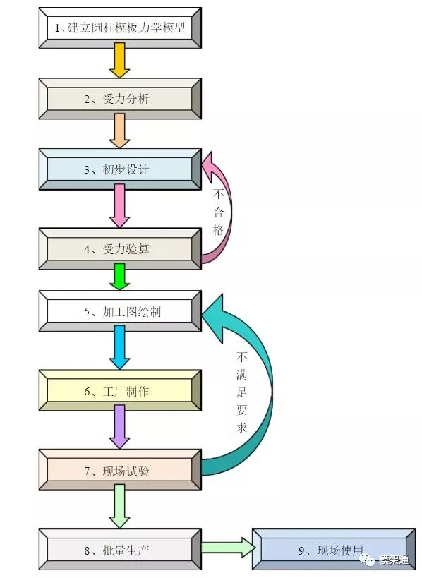 通过上述对比分析,确定采用单片玻璃钢模板用于本工程的所有圆柱的定位加固工具,并制定以下制作应用流程图: