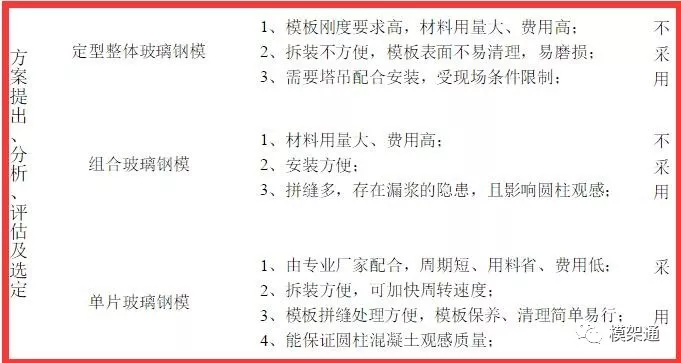 3、拆装方便,便于施工人员操作,省时省力。 03方案的提出、分析、评估及选定因此,项目部综合各方面因素考量,确定采用玻璃钢圆柱模板方案,且进一步进行深化分析。