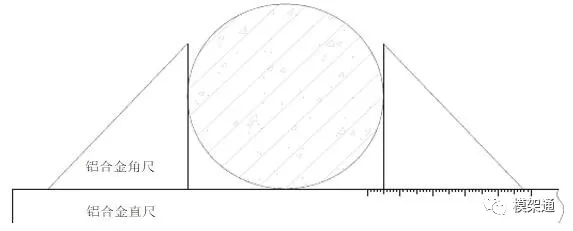 圆柱模板拆除后,采用专制工具对圆柱截面尺寸的复核,如下图所示: