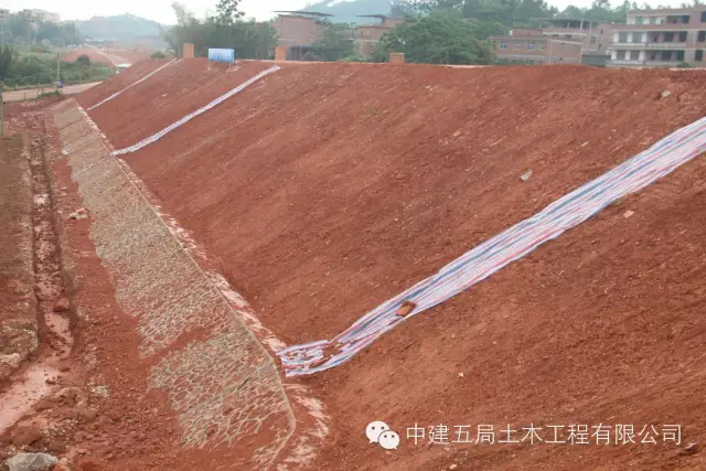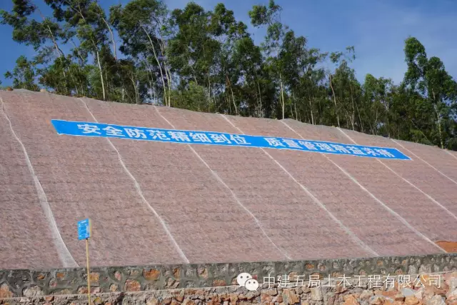边坡植草:边坡及时喷播草籽,防止雨季水土流失。