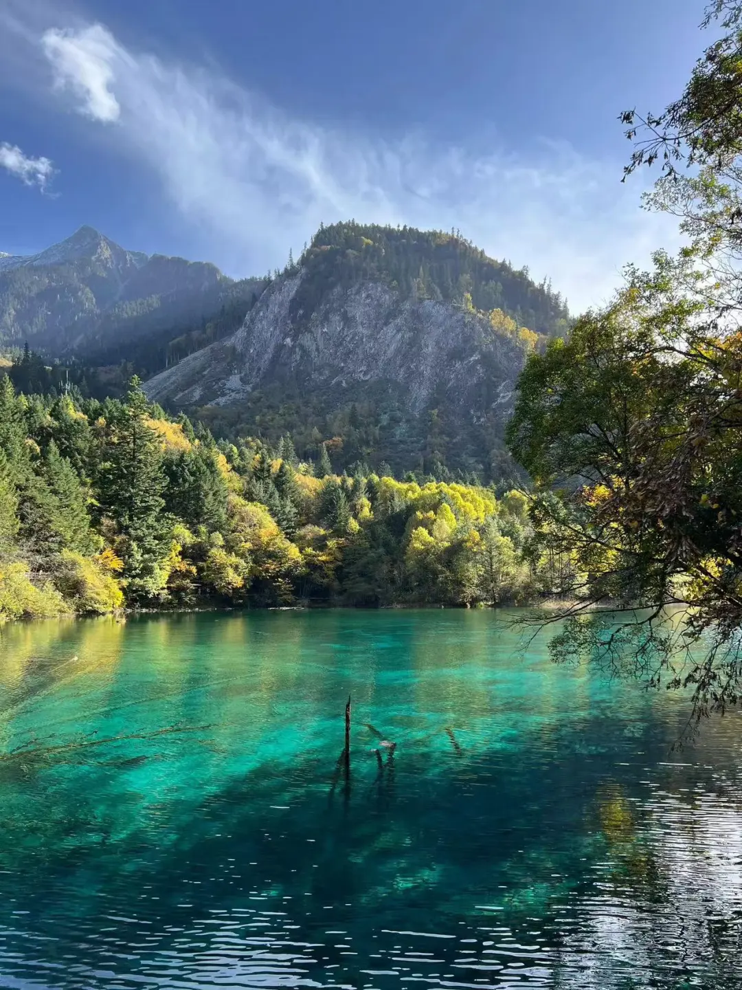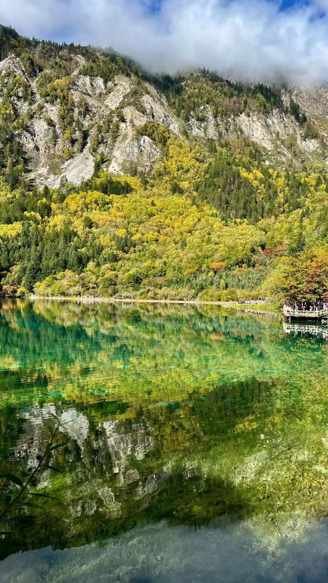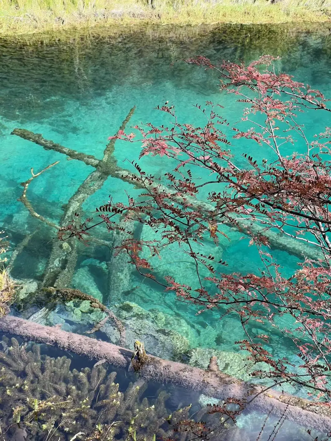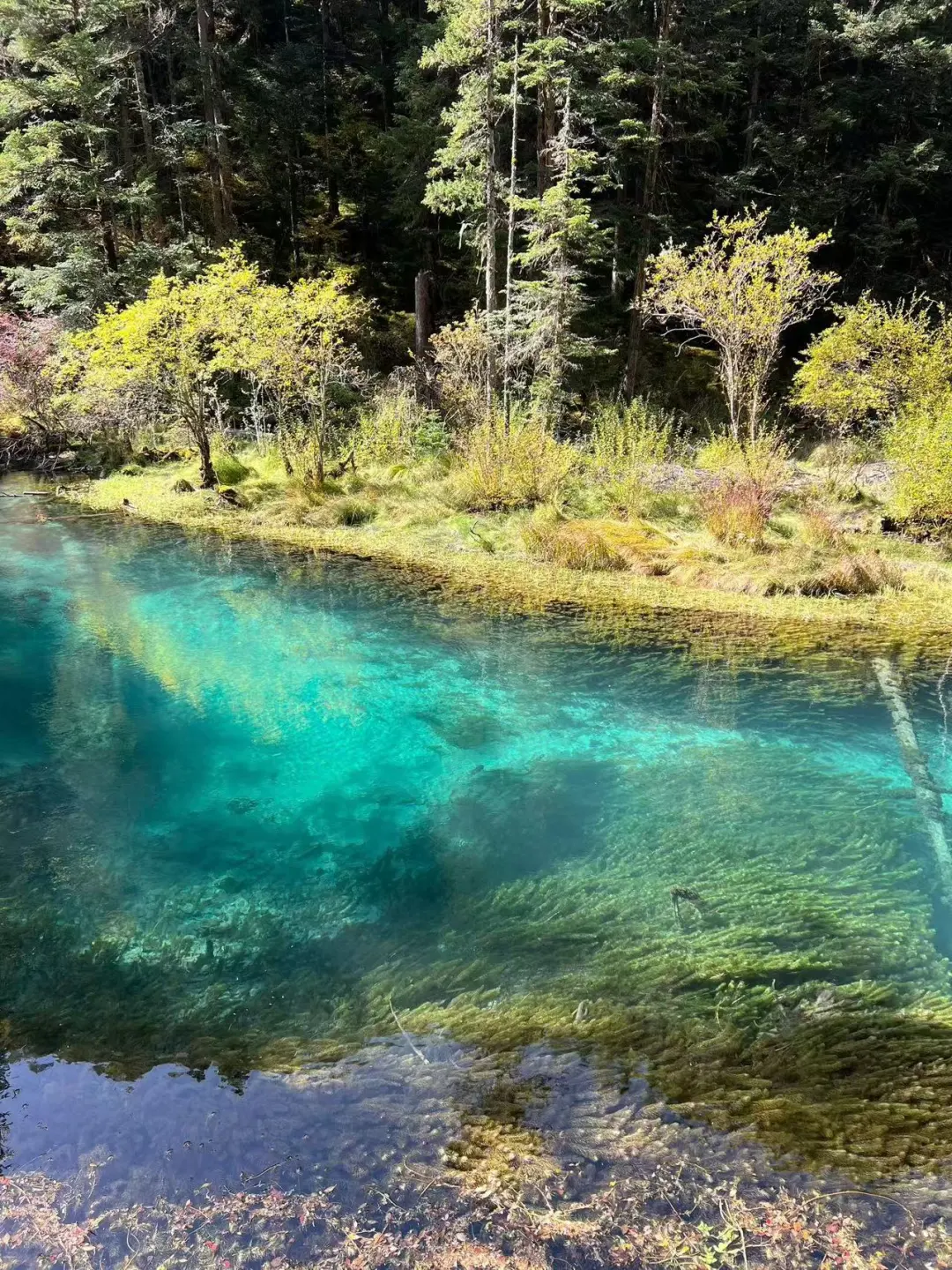 加六六微信获取更多旅游资讯,更多小众目的地,做你旅行路上的指路者&避坑者目前有红叶的地方不多,更多的是黄叶卧龙海,火花海和镜海附近稍微有几棵红叶树,可以配合着湖水一起拍五花海稍微有一些相对集中的红叶,加上湖底颜色的变化,五花海确实是九寨沟最精华的部分。