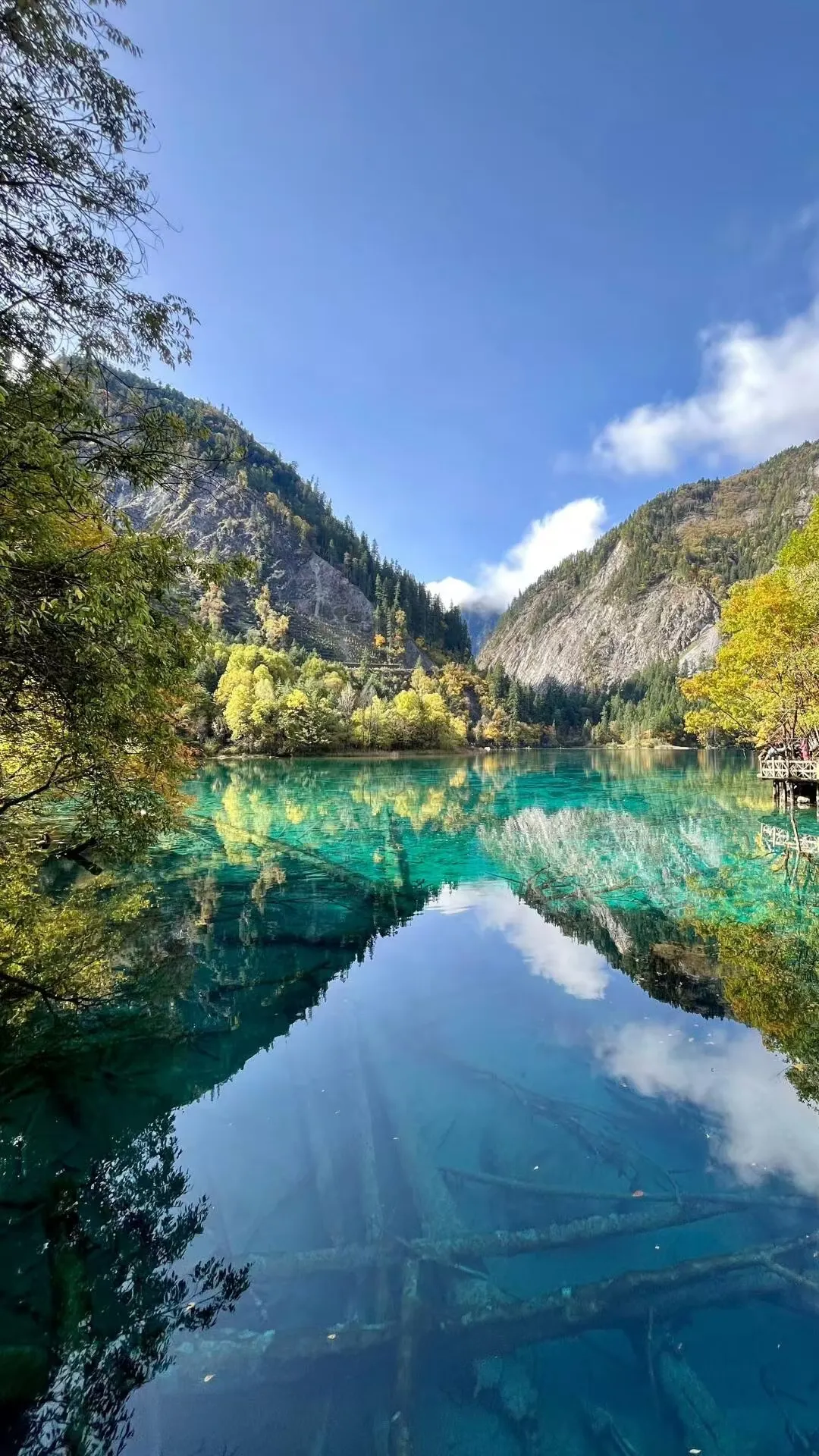 位于四川阿坝州的九寨沟,秋季的它,宛如一个童话世界,五彩斑斓的树叶与湛蓝的湖水相互映衬。这里简直就是大自然的调色盘,一步一景,让人陶醉其中。
