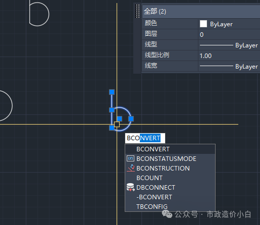 2. 选择一组准备要转换为块的对象,并输入命令:BCONVERT,确定后,AutoCAD 2025开始自动检测图形中与选择对象相同的对象,并亮显。可能通过同时按Shift键和鼠标来剔除不希望转换的对象。