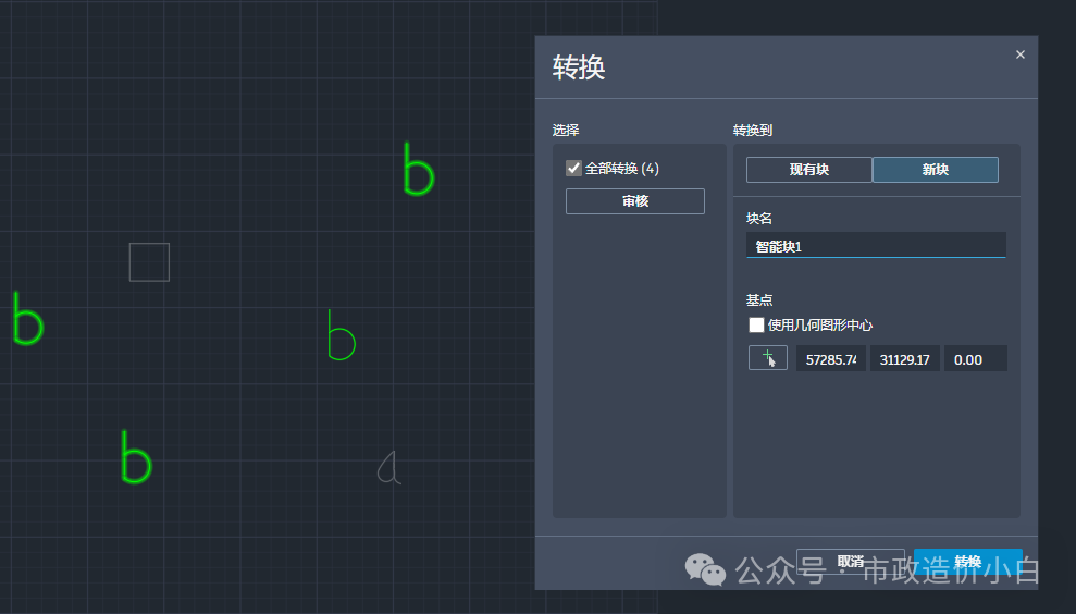 4. 按“转换”后,图形中所有显亮对象全部(也可以在转换选项对话框中选择不全部转换)转换为块。