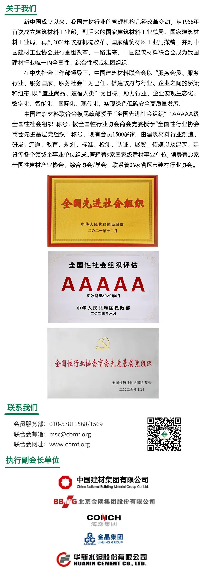 审核:刘杨、胡恩燕往期推荐工业和信息化部等六部门印发《建材行业稳增长工作方案(2025—2026年)》一图读懂《建材行业稳增长工作方案(2025—2026年)》投票开启 | 2025年建材行业“我最喜爱的质量管理小组”和“我最喜爱的质量信得过班组”