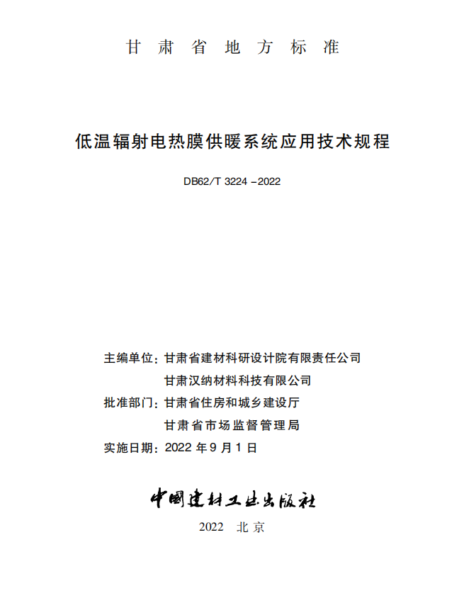 资讯 | 《低温辐射电热膜供暖系统应用技术规程》新版发布,2022年9月1日实施!