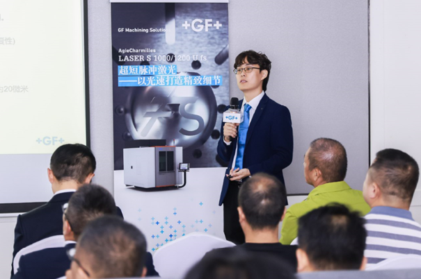 GF加工方案的激光产品经理蔡东海先生为与会嘉宾介绍了2023年激光技术的最新产品—Laser S 1200 U fs。配备光纤飞秒激光器的Laser S 1200 U fs确保了激光加工工艺能够以更高的质量创造出最精致的细节,同时在大尺寸零件加工中保持高性能。升级的加工能力使激光技术由此进入细微加工领域,并极大的延展了加工范围,结合传统加工技术,满足各种不同行业的应用要求,例如汽车照明及内外饰,消费电子,等高附加值领域。  应用展件+