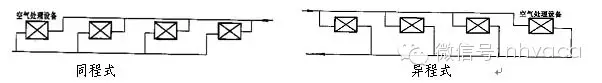 ★组合式空调器——面对组合空调器回风口进出水在右侧为右式,反之为左式。