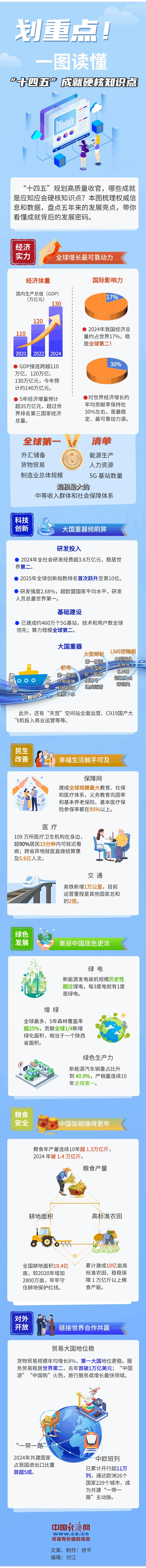 “十四五”规划高质量收官,哪些成就是应知应会硬核知识点?本图梳理权威信息和数据,盘点五年来的发展亮点,带你看懂成就背后的发展密码。