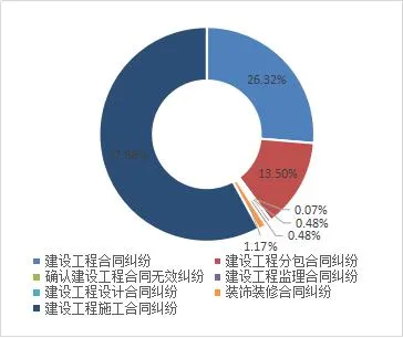 福建全省法院一审建设工程合同纠纷案件案由分布图