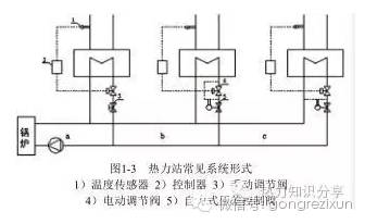 就针对于采用间接连接方式的集中供热系统而言,系统中热力站的调控,主要是通过对一次网电动调节阀的调节来实现的。通过对一次网水流量的改变,来确保二次网供水的温度及其设定值,在这里面,二次网所设定的供水温度,主要是由气候补偿器所提供的。一般来说,其主要包括以下两种做法 :第一种是由各个支路来进行自力式压差控制阀的串联安装(图1-3c),以此来提供一个恒定的压差给电动调节阀,确保其能够不受别的热力站影响作用,保证其在任何负荷下都可以稳定运行,不过,该系统具有的一个最大缺点,就是需要消耗多余的资用压头,并且会导致热网循环泵的扬程增加,图1-3b 与之相类似,其主要是在调节阀的两端,来进行自力式压差控制阀的安装,这样一来,不仅可以确保调节阀的调节功能,同时也可以起到一个比较好的调节效果。再就是如图1-3a 所示的,通过运用手动调节阀串联安装的方式,来有效克服在系统当中使用过多资用压头得问题,这样一来,就能够确保电动调节阀能够稳定运行。