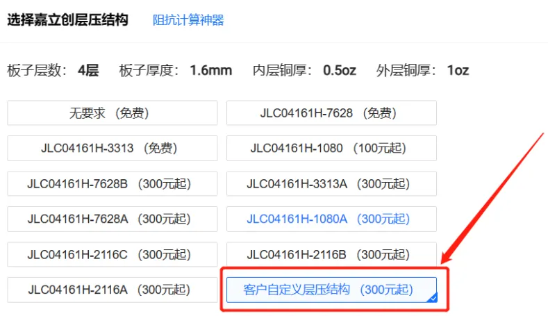 嘉立创官网上提供了250多种阻抗结构供我们挑选,后续还会不断增加。(链接:https://tools.jlc.com/jlcTools/#/impedanceDefaultTemplate)