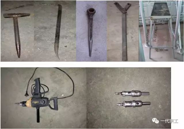 A5 工具:铁锤、撬棍、扳手、拆模器、操作凳、电钻、开孔钻头