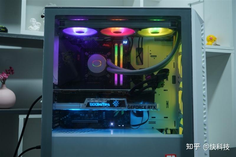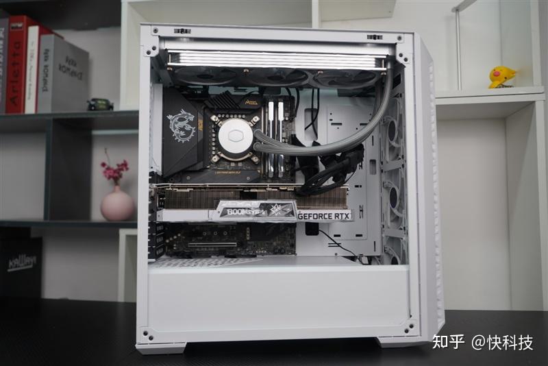 装机配置我们使用的是标准的ATX主板和三插槽的RTX 3090 Ti显卡,水冷使用的是酷冷至尊冰神B360。