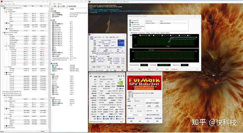 继续双烤测试10分钟,此时CPU的功率稳定在210W左右,全核最大频率在4.7GHz,最高温度在95~100℃浮动。