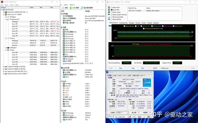 即便这套配置的总功耗达到了500W左右,毁灭者500也能将温度够维持在合理的水准,就连RTX 3080Ti这种级别的显卡也能Hold住。
