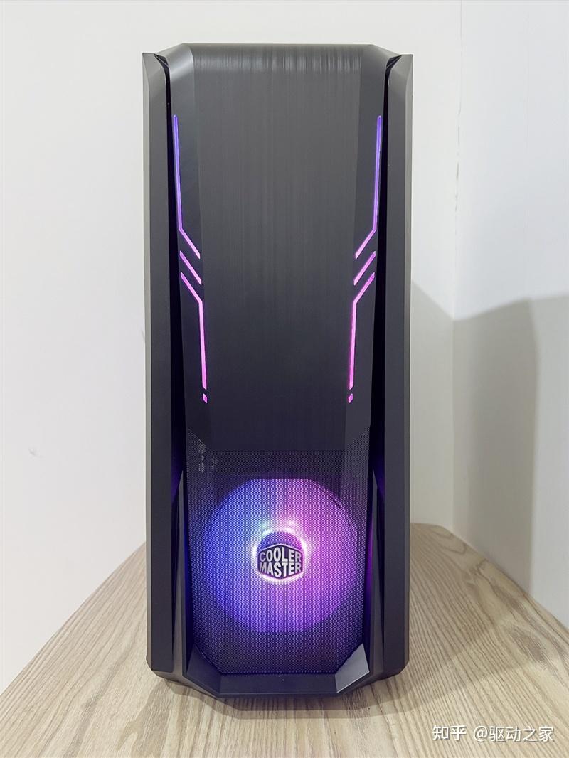 前面板使用了拉丝纹理处理,延续了上半部分封闭、下半部分的通风的设计。上半部分新加入ARGB灯条,实际灯光效果在后文为大家展示。