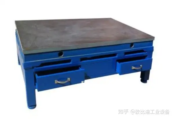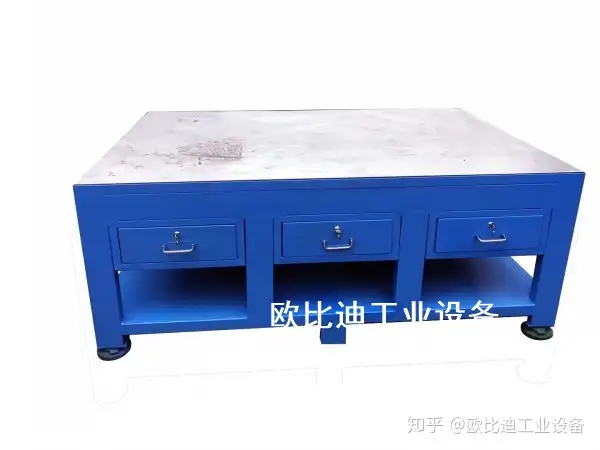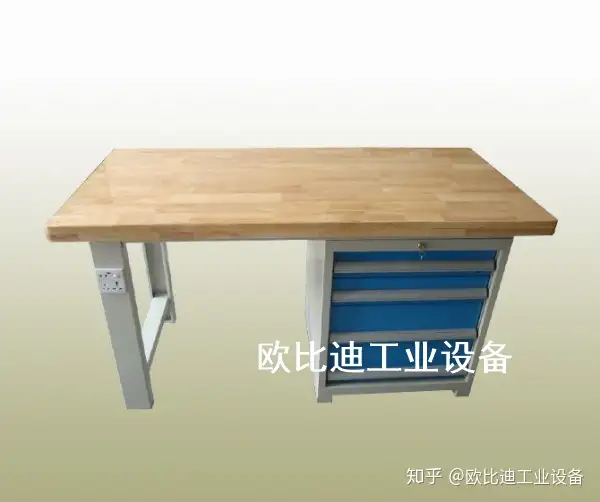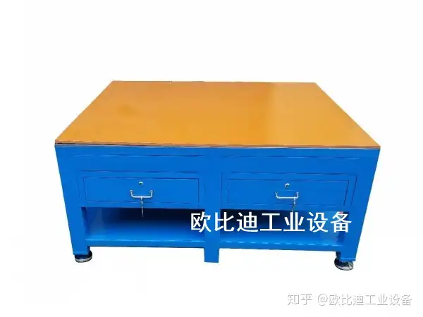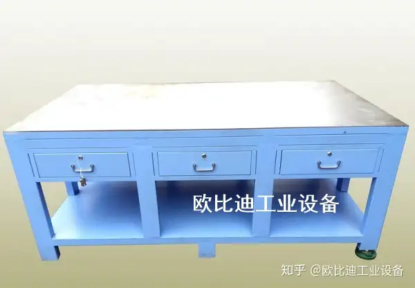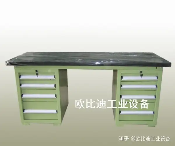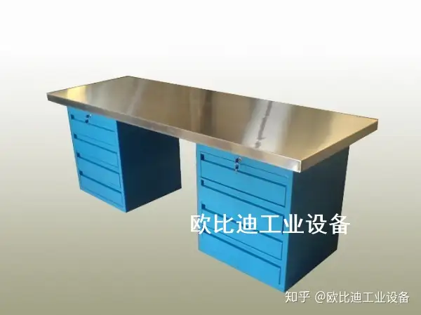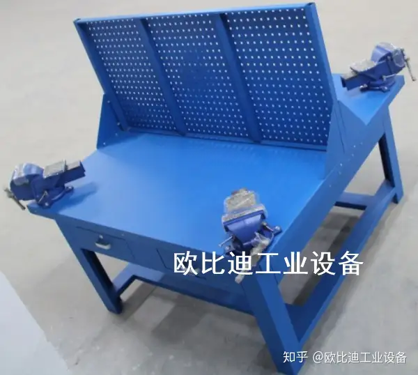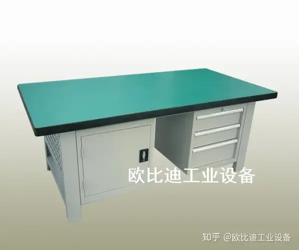 1. 六边钳工台台面采用50mm高密度板,表面贴3mm高分子复合胶皮(特性:耐磨、耐划、防腐蚀)。 备注:台面为两块拼接组成