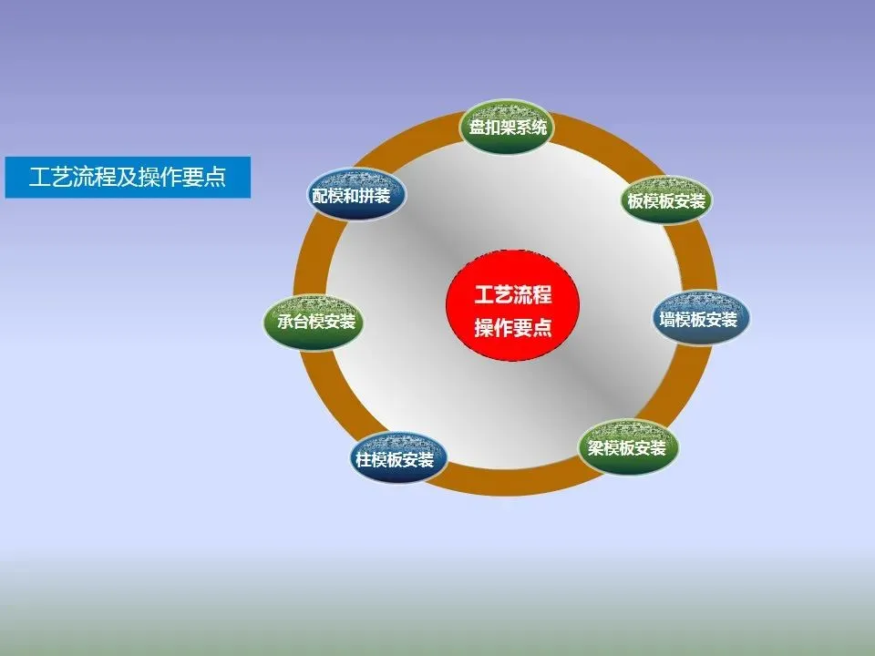 )所有进入现场的木工和架子工除了安全和文明施工培训外,重点进行铝框木模和盘扣式支模架搭设的培训,并进行老带新的分组,即使是不熟练的小工,通过二周的培训和跟班作业,也能熟练进行铝框木模、盘扣式支模架的装配施工。 ( 2 )为铝框木模配套施工的一些特殊工种人员按规定必须有操作合格证,持证上岗,如电工、焊工、架子工等。