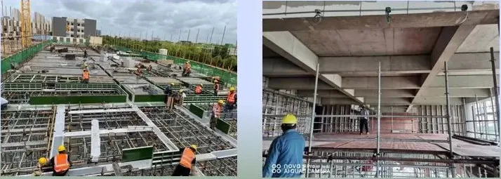 另一种有采用铝框木模+方管龙骨或专门支撑系统,住宅楼项目采用比较多。