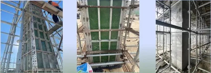 好的铝框木模只在现场简单拼装对接固定即可,二个工人每天可完成45只的框架柱模板的安装。施工效率提升倍以上,工人劳动强度降低、操作简单、收入得到增加。