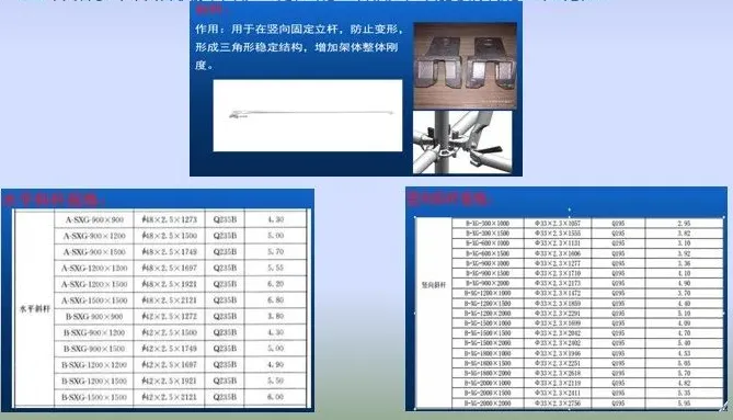 900*1500,900*2000,1200*2000,1500*2000与立杆和水平杆相联接。形成稳定的三角形增强排架的刚性稳定。