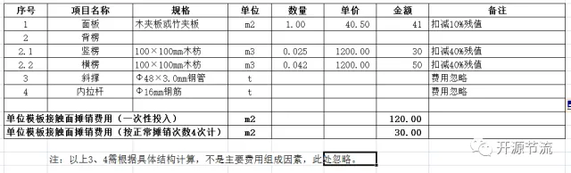 表2:木模板体系一次性投入费用测算(单位模板面积)
