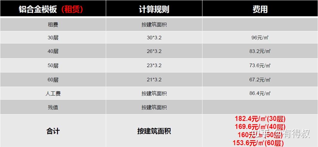 整体式铝合金模板根据数据,可最多重复使用300次,单一使用次数越多,造价越低。(残值铝材+钢材=400元/㎡)