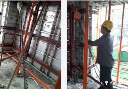 ① 用葫芦进行拉结有效控制垂直度
