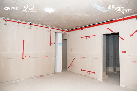 基于“铝合金模板、爬架、井道电梯、全砼墙体、免薄抹灰”五大基础工艺,和“景观先行、市政先行、地库先行”三大技术支撑,旭辉于2019年率先在行业中提出“打造房地产业透明工厂”的概念,并形成了“标准透明、材料透明、过程透明、检验透明、服务透明”5大透明和12大体验”,透明工厂得以在全国推广。