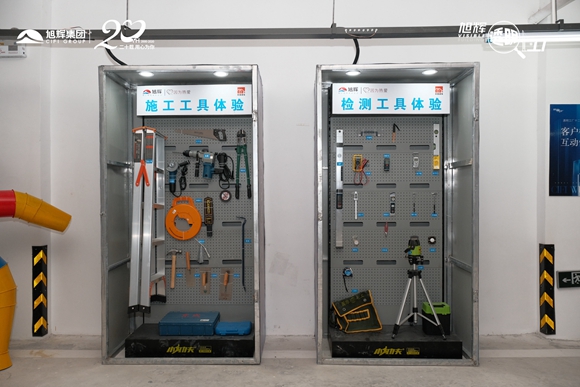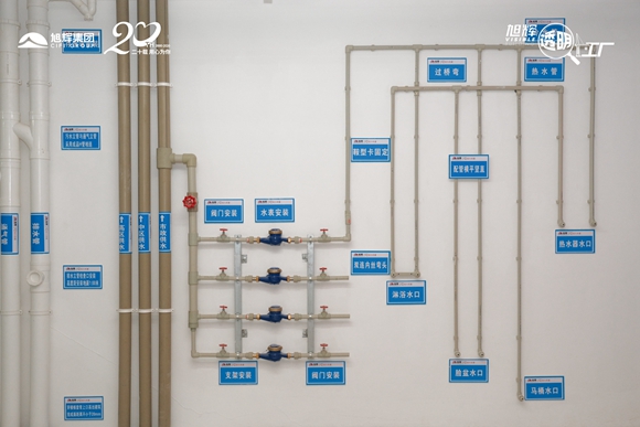 包括建筑景观及外立面、14,000平米的地库展示区、精装材料展示区、建造过程展示区、工艺工法样板间、精装样板间等,旭辉透明工厂均实现“常态化工地开放”。其中包括基层墙体抹灰找平、高强粘接剂、保温体系、装饰面层等多道工序,地面铺贴、墙面涂饰等工程的各道工序工艺也完全透明地进行实体剖切展示,并在旁边清晰地附上质量检查方法及标准。