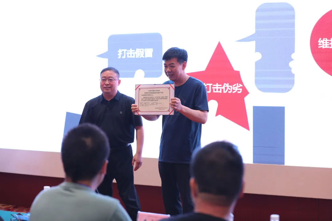 会议进行过程中,中心主任周建滨为三家签约公司颁发了3D装配式钢筋桁架楼层板专利技术及科技成果实施许可证。