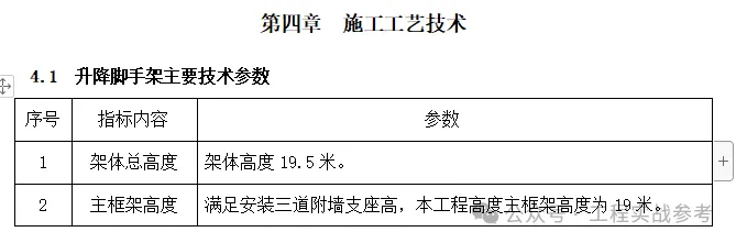 4.1 升降脚手架主要技术参数