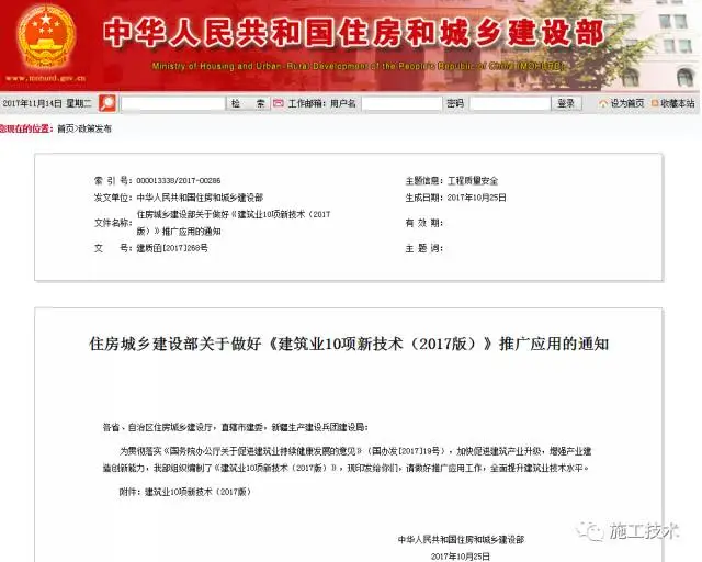 在住房和城乡建设部工程质量安全监管司的组织和指导下,由中国建筑科学研究院牵头编制的《建筑业10项新技术(2017版)》(以下简称“2017版”)10月25日正式颁布。2017版共包括10个大项、107项技术。这也是继1994版、1998版、2005版和2010版之后的第五次改版升级。
