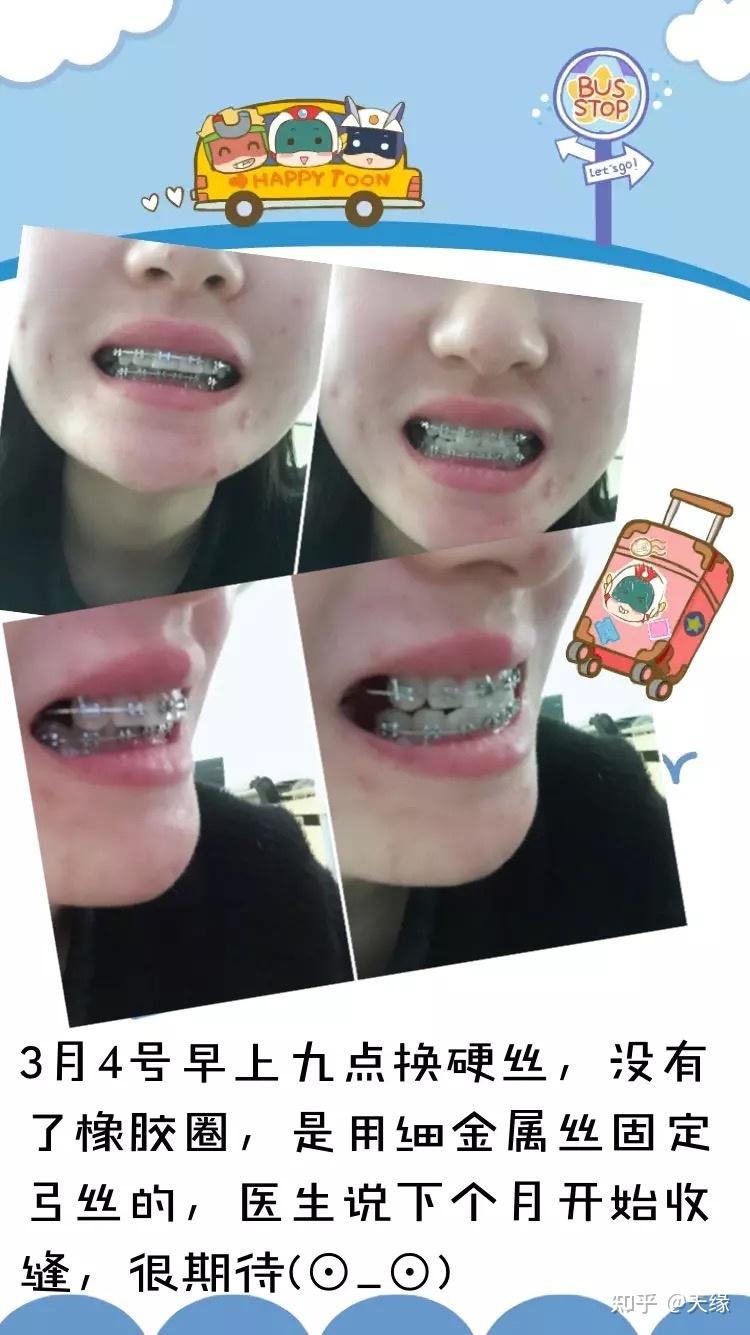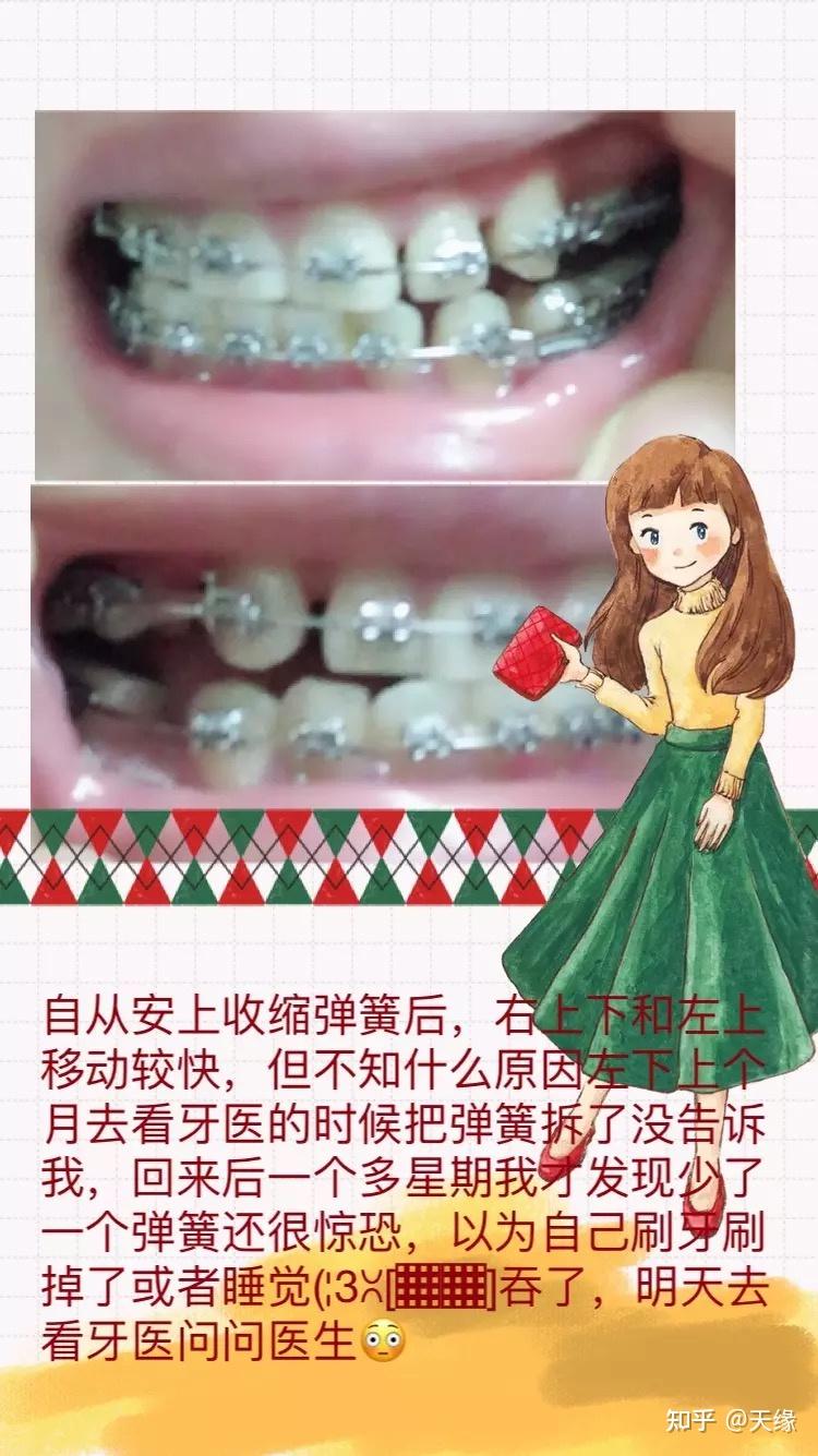 正畸过程中,一定要按照医生说的复诊时间去医院,一般为3-4个星期复诊有一次,一定要好好挂皮筋。拖拉时间和偷懒都会影响最后的效果,现在我的上牙和下牙中缝没对中,就是当时挂皮筋时怕疼偷了懒,一旦拔牙后的空位置都收完后,就很难再调整中缝不齐的问题了,所以,小伙伴们既然下定决心整牙,那就要坚持到最后的胜利!!!