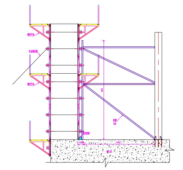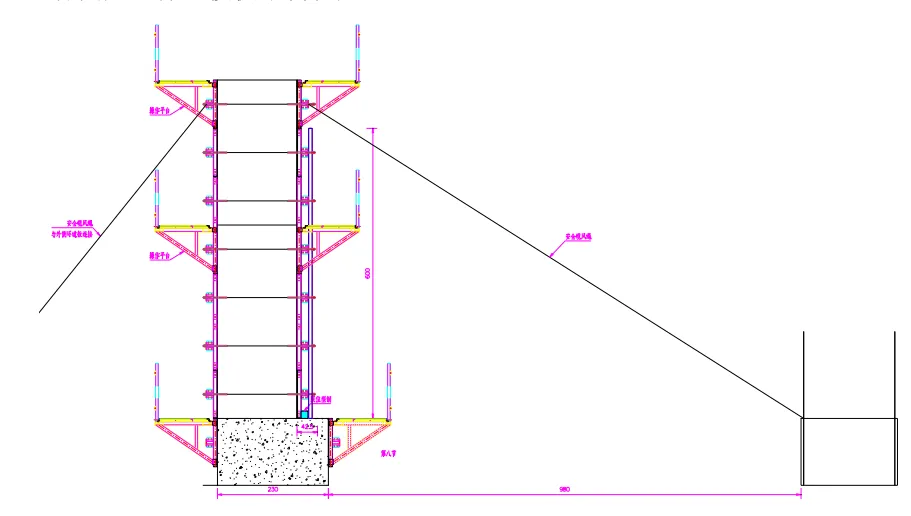 图4 用于固定模板的间距为5.4m的内外缆风绳