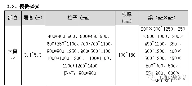 本次方案主要针对万达广场项目模架体系,主要包括大商业主楼的柱、墙、梁、板、梯的支模架的搭设及模板的安装。