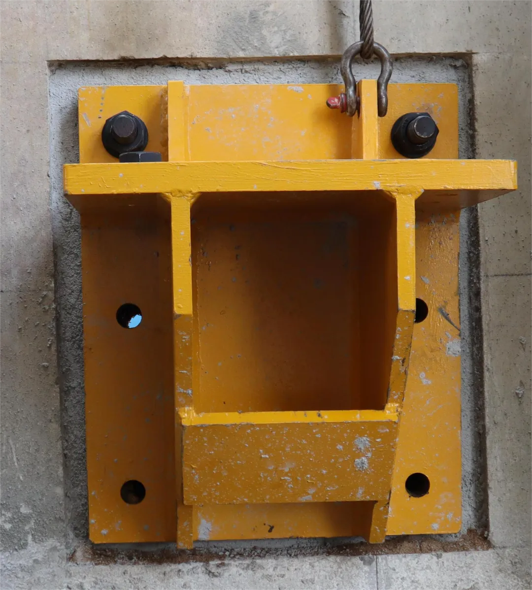 超大截面柱无孔加固施工技术  工程1.9m×1.9m柱模板加固采用方圆扣进行加固,采用8#/10#定制型钢,方圆扣具有“柱体表面光洁、模板无需打孔、周转次数提高”等优点。