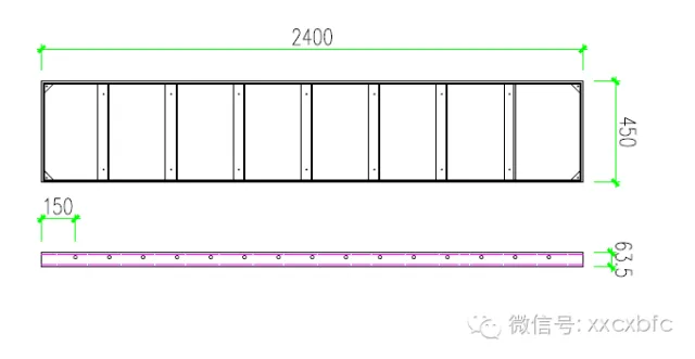 63系列模板体系模板的宽度一般为600,模数为50递增,模板的其长度一般为600 -2400mm,以300的模数量递增,打孔以150mm模数量递增。若长度未被整除,则视为异型模板。填充板的长度可通过计算横构件(横梁)的间距得出。