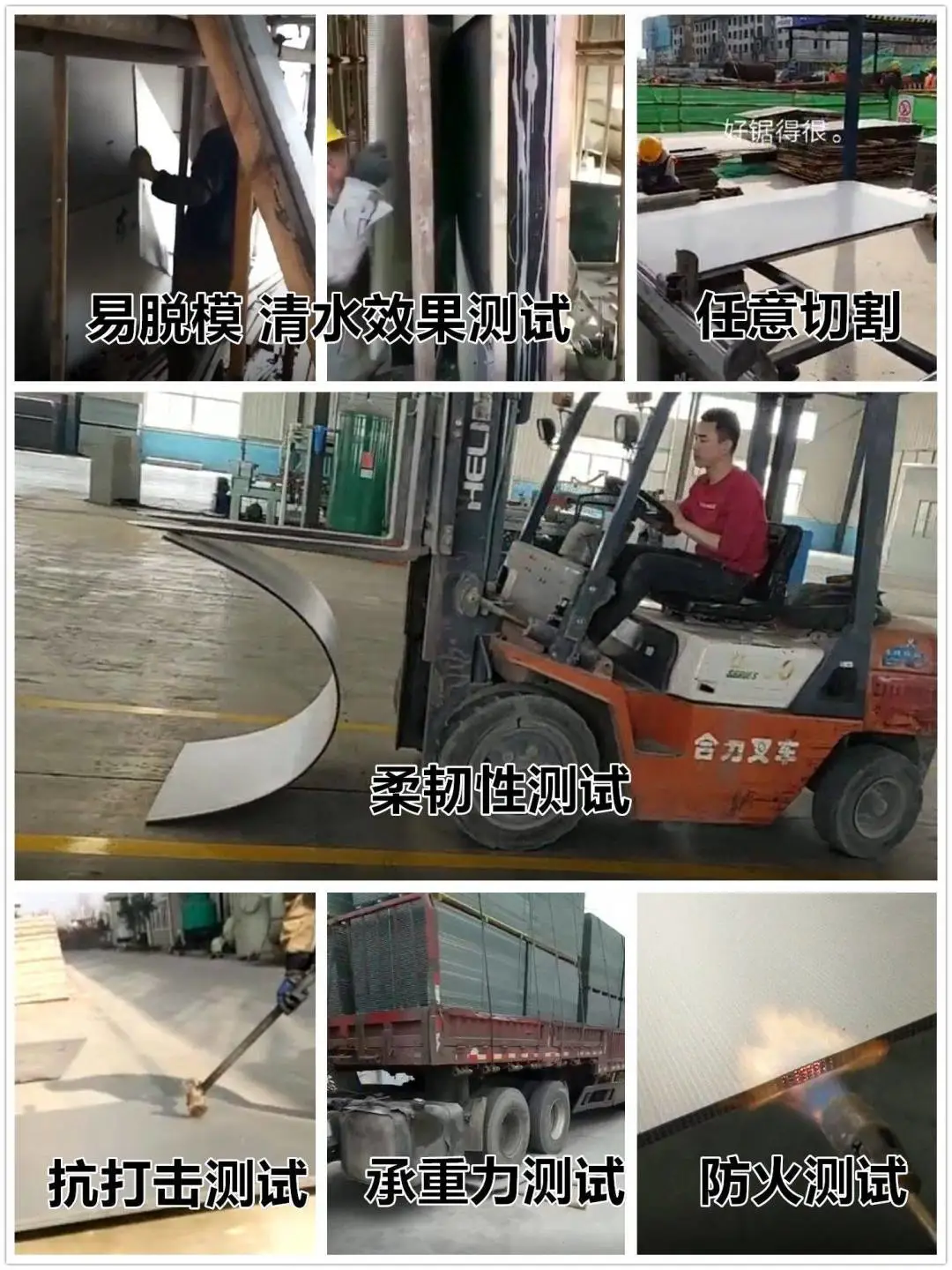 7.表面平滑、光洁,与混凝土剥离性好,易脱模,可大大加快施工进度,有助于实现清水混凝土。