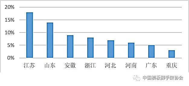 据统计,江苏省塑料模板占比最多约18%,其中制造业、批发零售等企业占比超过50%。其次,数量最多的依次为山东省14%、安徽省9%。