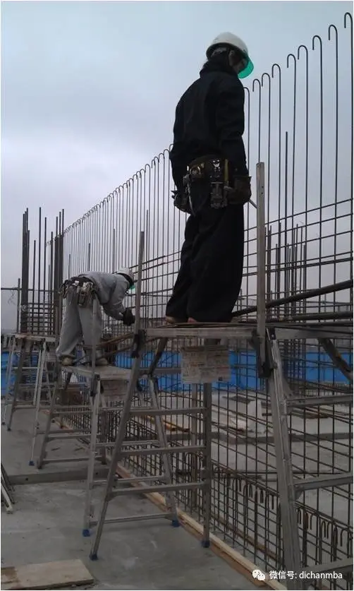 绑扎墙筋时使用的“皮数杆”,该工艺在国内已经“失传”很久了