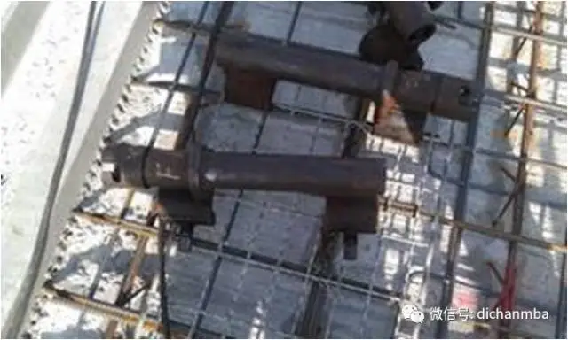 请注意其中一个是带卡槽的,待梁钢筋吊装就位后再将中间那段螺杆卡上去