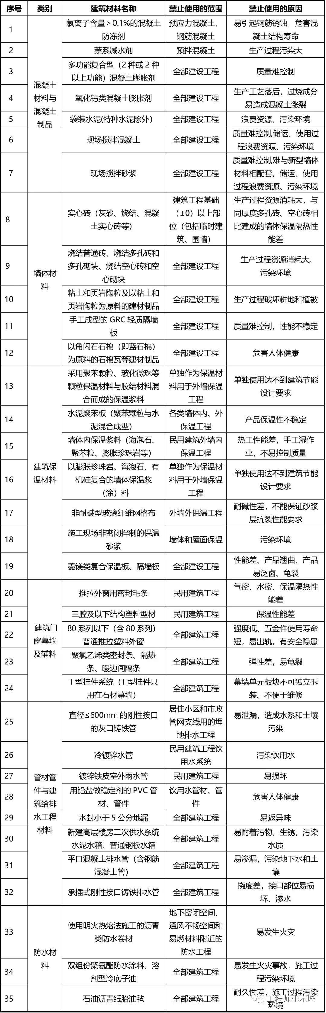 一、禁止使用的建筑材料
