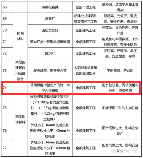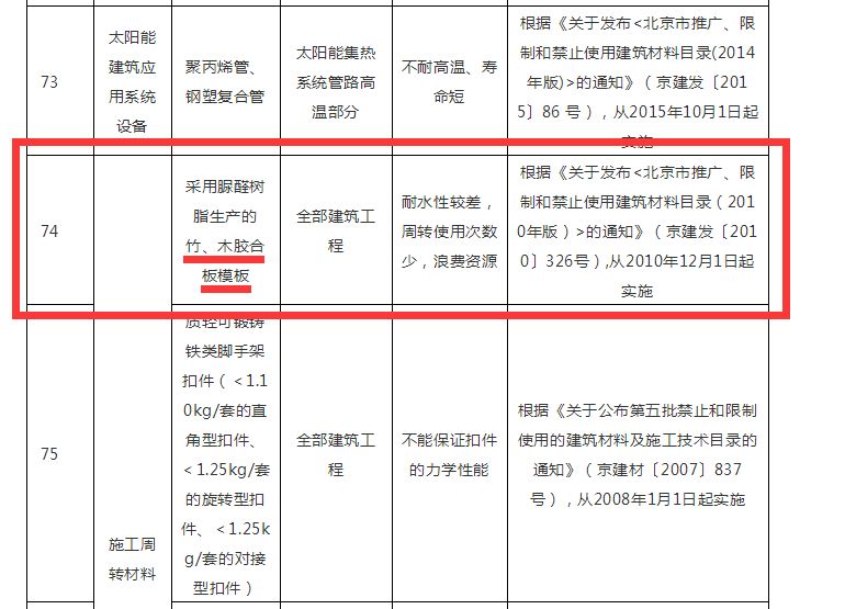 刚刚,北京市住房和城乡建设委员会发布了关于征求《北京市禁止使用建筑材料目录(2018年版)》意见的通知,通知指出,77种建筑材料将被禁止使用。其中,竹、木胶合板模板耐水性较差、周转次数少,资源浪费拟被禁止使用。